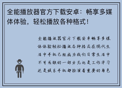 全面解析toptoptop下载:功能、优势与使用技巧 在当今数字化时代,下载工具的选择对于用户来说至关重要。toptoptop下载作为一款备受欢迎的下载工具,凭借其强大的功能和用户友好的界面,吸引了大量用户的关注。本文将全面解析toptoptop下载的功能、优势以及使用技巧,帮助用户更好地利用这...